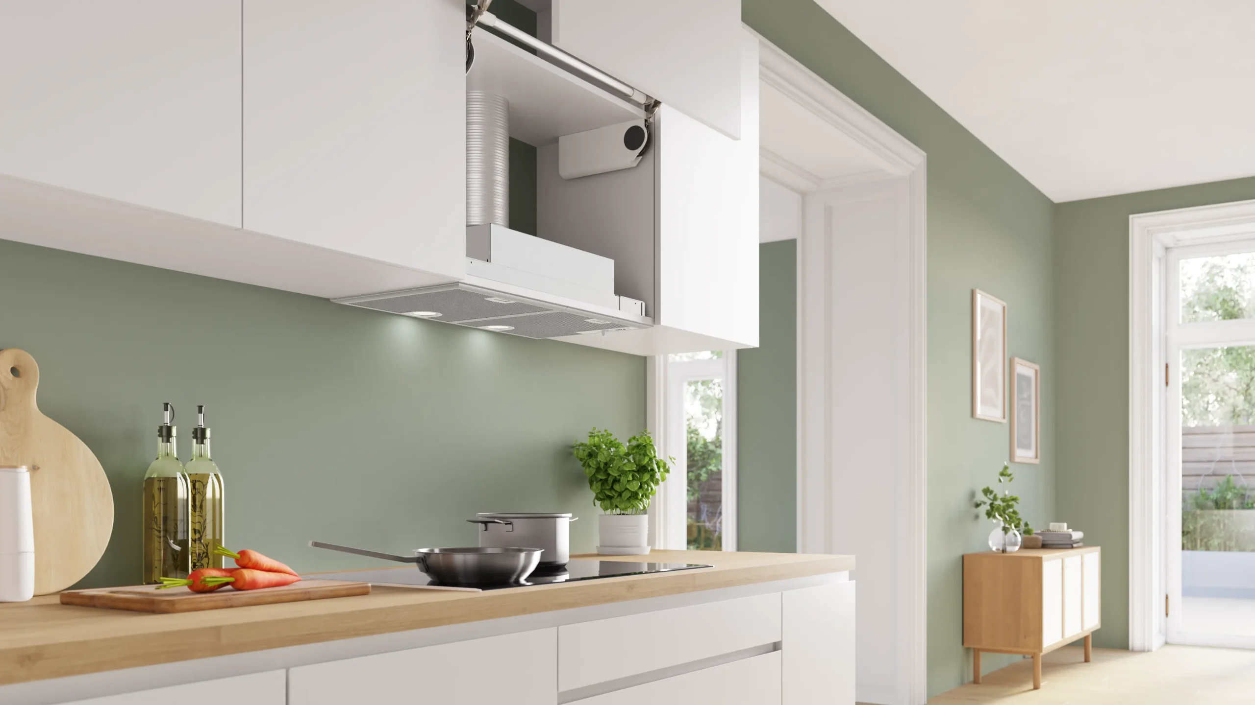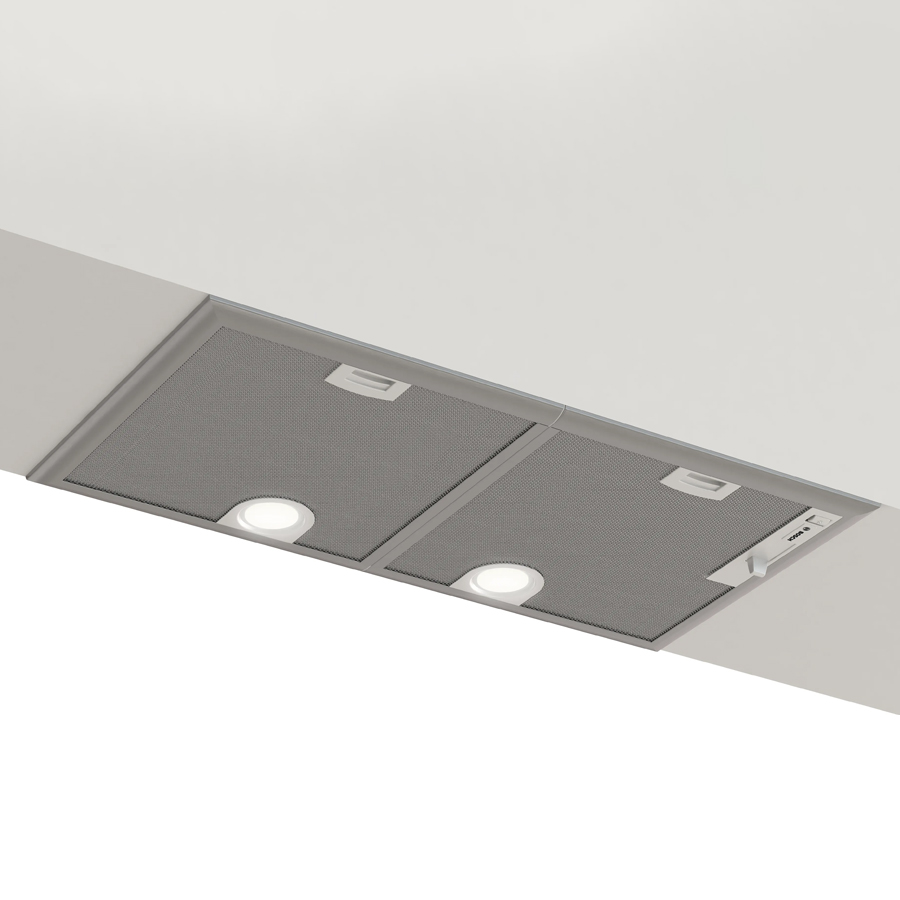- Design: Flush-fit canopy hood with electronic push-button controls for seamless integration and quiet, high-performance ventilation
