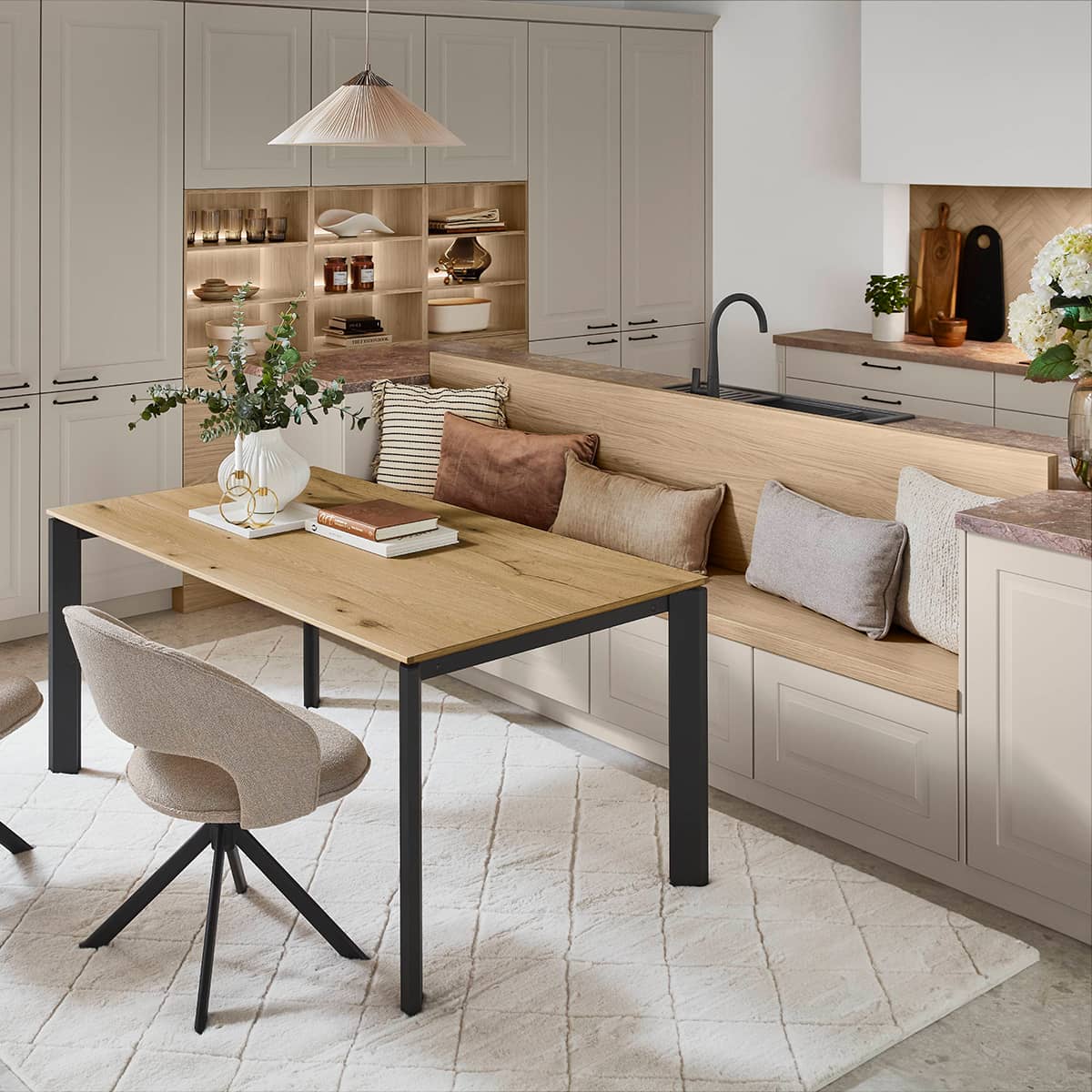 The modern cottage look is still in great demand in interior design, and the trend toward a new naturalness is popular with young and old alike. Clear shapes, soft lines and natural decors and colours are characteristic of the modern cottage style. An abundance of alluring details lend this kitchen an authentic appearance with a feel-good factor. Thanks to innovative kitchen technology, this results in a successful union of the traditional and contemporary design.