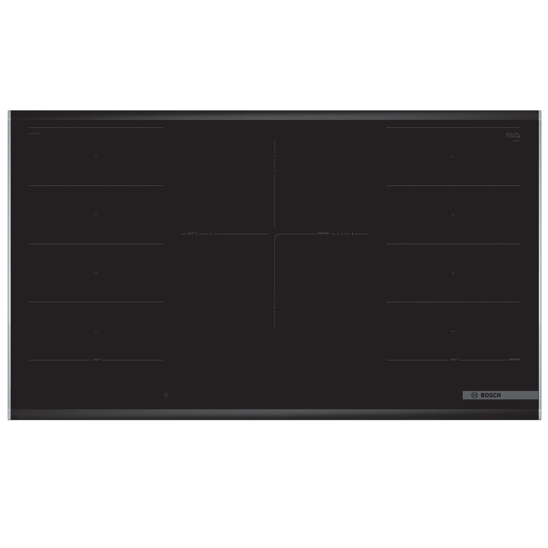 The Bosch PXV975DC1E Induction Hob (90 cm) provides a modern, efficient cooking experience with its five versatile cooking zones. This hob features two FlexInduction zones, which allow you to place cookware of any shape or size within the 40 cm long zone for ultimate flexibility. The 32 cm threefold cooking zone ensures compatibility with both small and extra-large pots, such as paella pans. With 17 power levels, including a PowerBoost function for faster boiling, the DirectSelect Premium touch control makes it easy to select cooking zones and power settings.