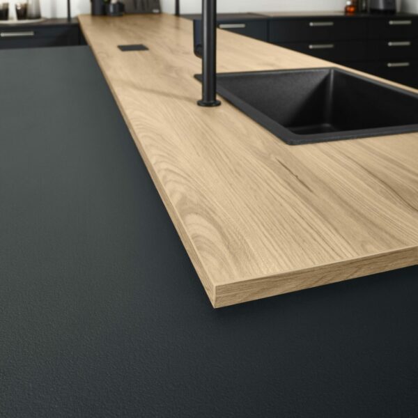 The finely profiled framed doors and framed glass doors with glazing bars are characteristic of these modern cottage-style kitchens. Together with the cornice profile and light pelmet, the perfectly coordinated pilasters frame the kitchen elegantly and give it a Mediterranean feel. This model kitchen shows how traditional style elements and modern kitchen design fit together beautifully