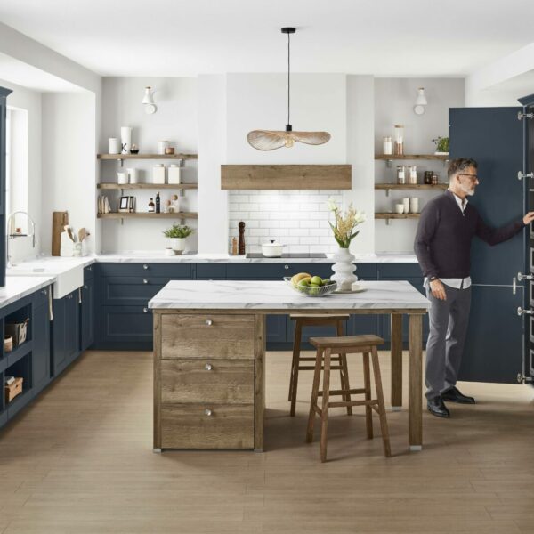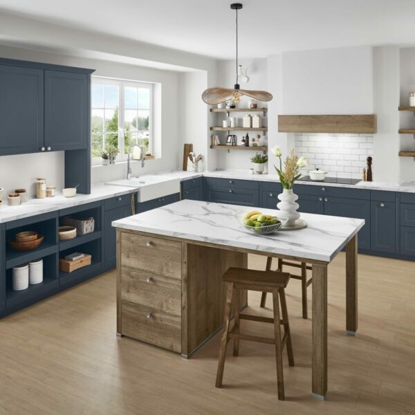 Frame by Nobilia is a modern country house kitchen that blends classic craftsmanship with fresh contemporary colours. Made in Germany and built to the highest standards, it comes with a 5-year warranty. The new colour range includes White, Olive, Stone Blue and Macchiato, each featuring a lacquered laminate wood texture that is elegant, durable and easy to maintain.