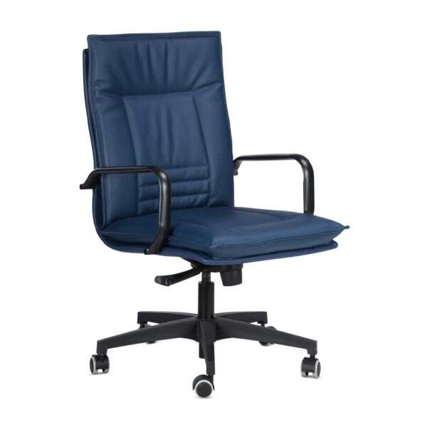 The Roma Meeting Chair combines executive comfort with refined design, featuring a fully upholstered monocoque shell and a swivel base with castors. Also available as a visitor chair with sled base.